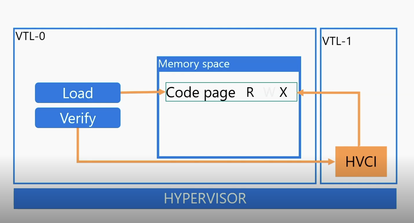 3. **Memory Protection:** HVCI relies on the principle that physical memory protections override virtual memory permissions. Even if virtual memory is configured to be writable or executable, the physical memory settings enforced by the hypervisor will take precedence, ensuring that malicious code cannot run in the kernel.